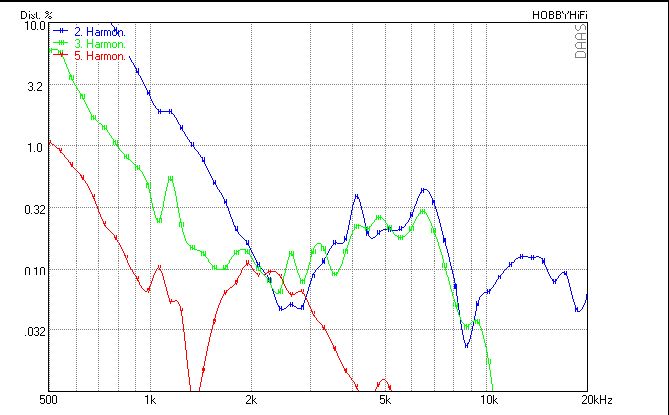 -Klirrfrequenzgangs mogelte sich das entsprechende Diagramm des kleineren Dreizöllers in das Datenblatt hinein. Hier ist die richtige Klirrkurve: