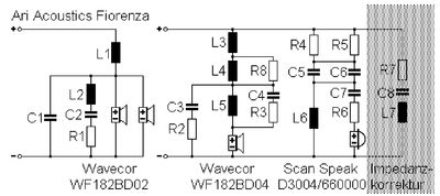 parallel zur Spule L4. Dieser hat den Wert 10 Ohm. Er wird nur für die Zweiwegversion „Fiorenza TS“ benötigt. In der Zweieinhalbweg-Version „Fiorenza“ ist L4 und damit auch R8 überbrückt, so